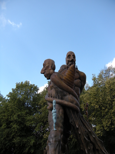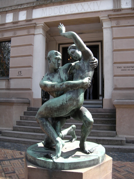 門前的雕像也是衣不蔽體, 依舊是崇尚自然健康看待人體的風格
