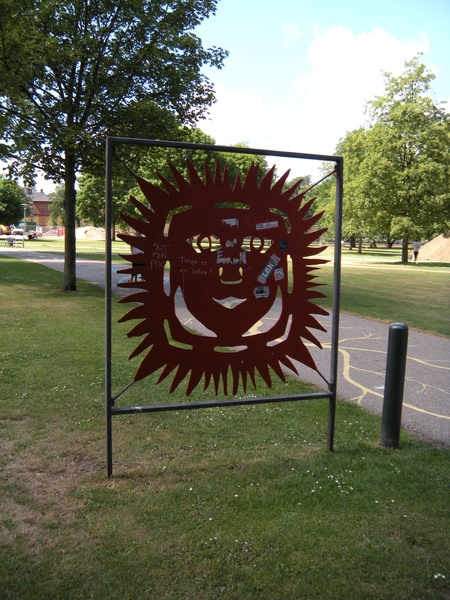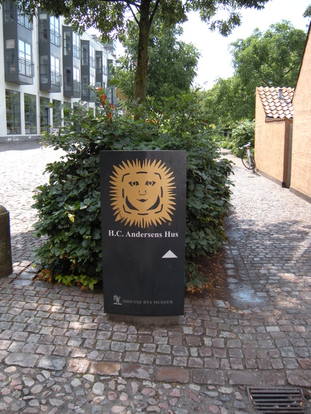 在這個城市中常常可以看到太陽公公的標示象徵著安徒生的足跡