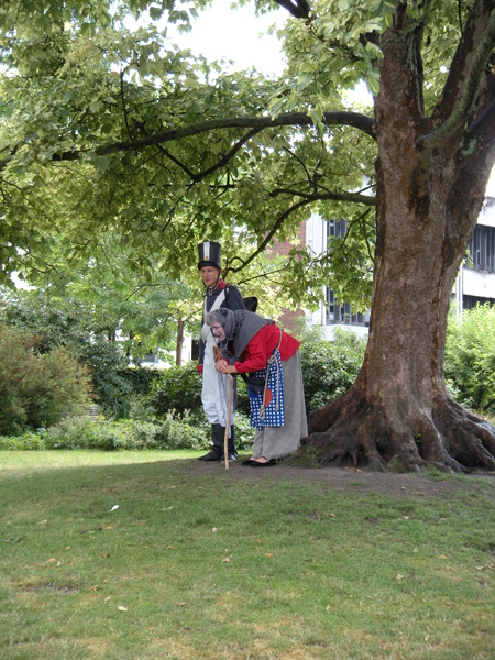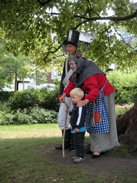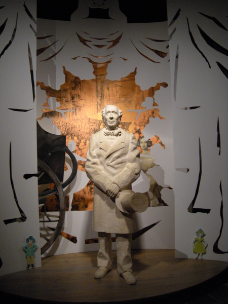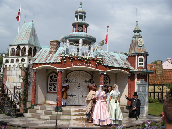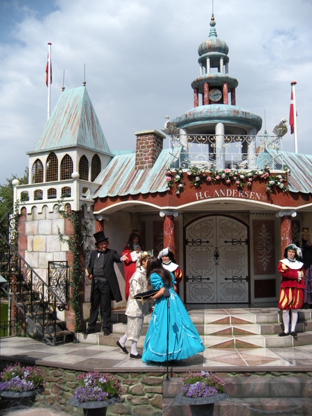 一看就知道設計者故意把安徒生的特色誇大, 因為安徒生本人比當時大部分的人身高高出許多, 而且雖然安徒生寫了許多的童話故事, 他本人並不如童話一般的可愛, 他本身的身體的狀況並不是很好,所以, 他本人是屬於瘦高略有病容的外型, 這一點設計者就故意把他的這種形象表現出來!!!