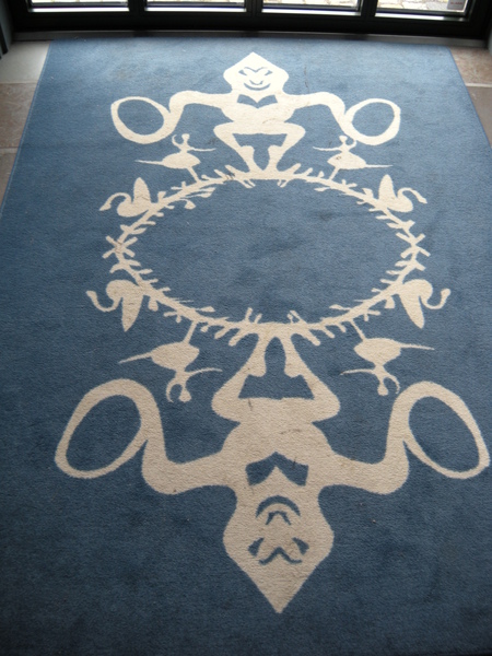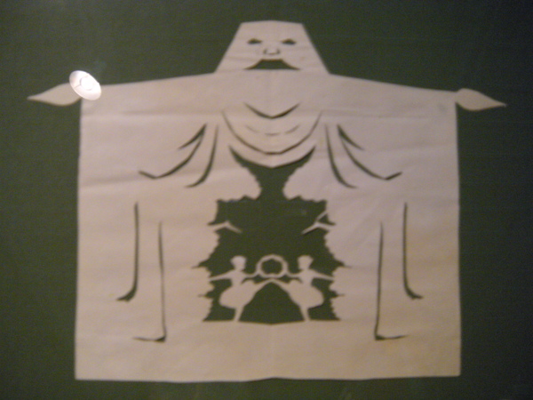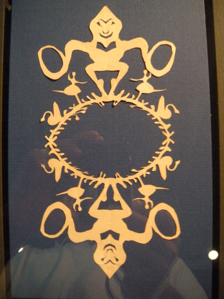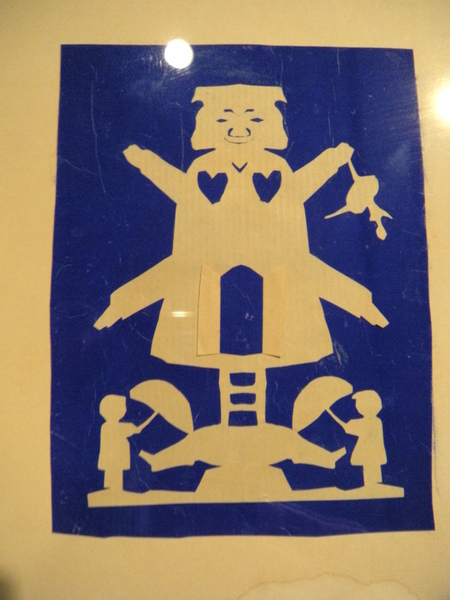 中間有個休息室 , 提供訪客自己動手作剪紙也可以把自己的作品貼在牆上。