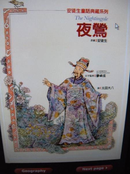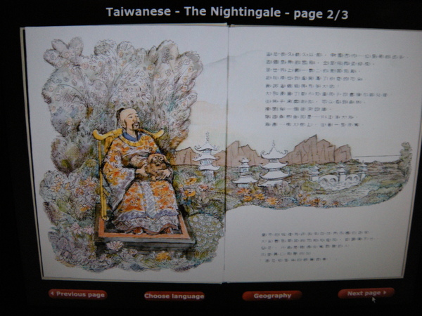 因為 , 安徒生的作品已經被翻譯成許多國家的文字,有一觸控式的電腦有全球的地圖只要你選點你來自於哪一個國家