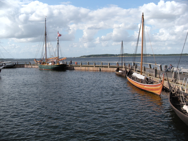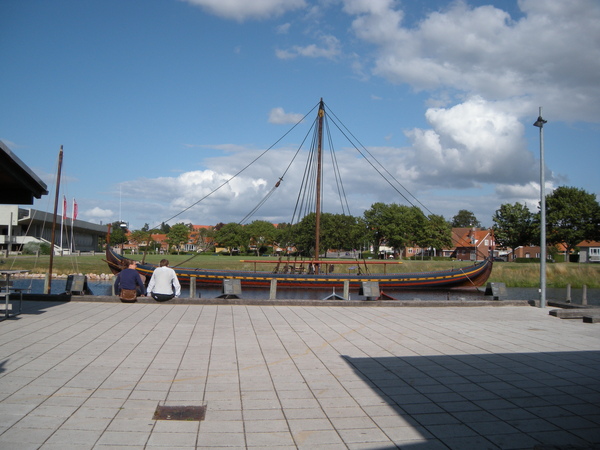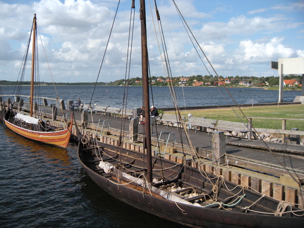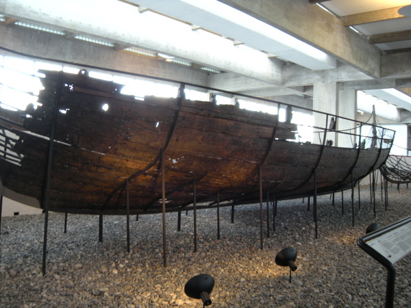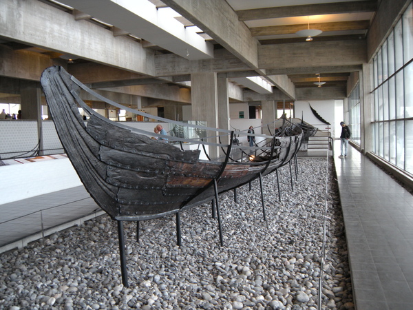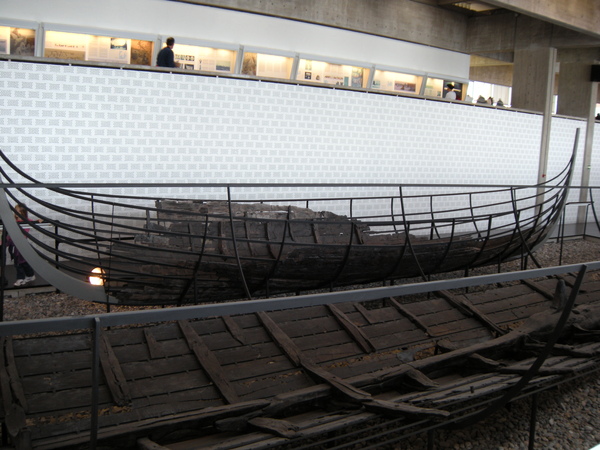 我覺得很有特色的是在館中看到一段影片,他們按照現有的遺跡重建一艘當時的維京船,我印象中除了領隊大多是青少年,從Roskilde一路好像是到北愛爾蘭,中間只有兩個停留點,抵達之後再沿著原路線回來前後總共花費大約3個月的時間,完全仿當時的路線,吃喝拉撒都在船上,出門的時候家人送行依依不捨
