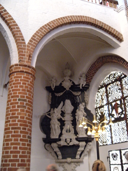 這個教堂有許多的國王與皇后的陵墓,是丹麥三處被列為世界文化遺產之一,雖然白天沒有機會參觀,趁演奏會結束偷拍幾張照片,因為有工作人員告訴我必須趕快離開,現在已經是休息的時間,所以我不得不離開。