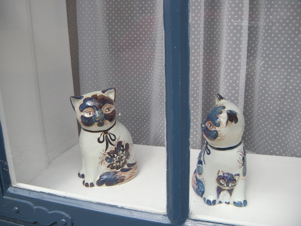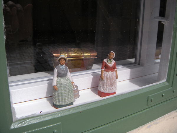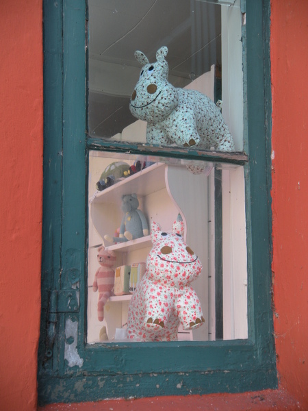 一邊欣賞窗戶的擺飾,窗戶的玻璃映照對面的街景,別有一番風味。