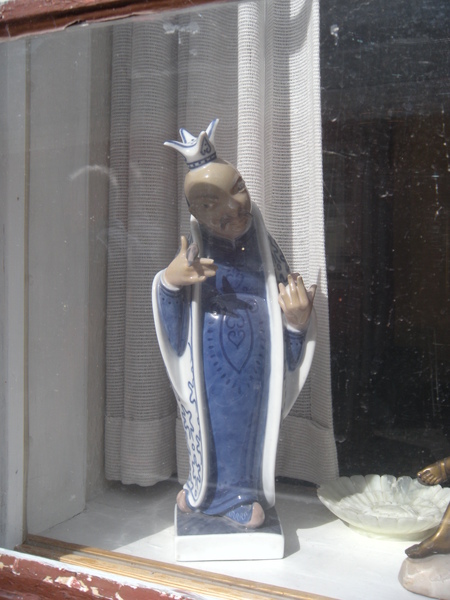 先說一個小故事,我剛下船的時候有看到一個倉庫,暫時當作藝廊,不知不覺走進去一看究竟,突然覺得好像有人在耳邊講話,卻又不知道講什麼。回頭一看原來是一位大約是五十歲左右的先生,他見我一臉茫然,馬上把他的頻道從丹麥文轉成英文。他的意思是"不好意思,我以為你是丹麥人!",我說"我來自台灣,那請問會說中文嗎?",他很好奇,為什麼會有一位來自台灣的人竟然會知道這個島嶼,我說因為我在台灣讀過一本書,而這位來自台灣的作者曾經在丹麥住過四年。他才恍然大悟!!!不過,他也不是簡單的人物,他跟我談起福建、廣東,原來,他是專門種植各種植物,而他曾經到過中國大陸兩次,為了採買植物需要的陶器或瓷器,我就這樣交了一個丹麥朋友,我想等我的日記完成之後再邀請他來看看,所以我最後跟他說" 也許有一天我會在台灣看到你!!!"