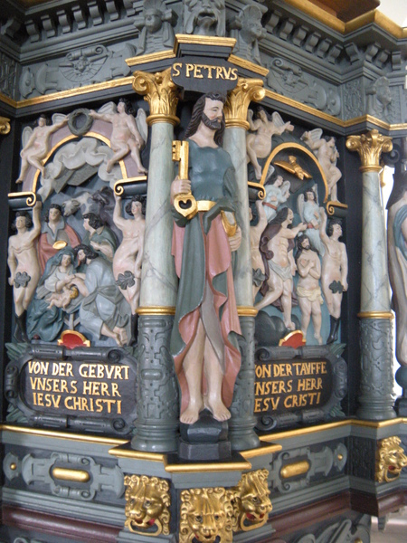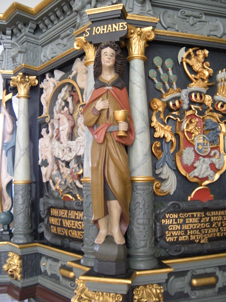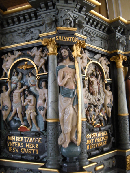 通常柱子上都是聖經上的故事,這時候剛好有一小群人進來,有一個先生很好心的跟我說,上面的文字都是德文,想當然這個地方離德國很近,但是不管是丹麥文或是德文,我都不懂。