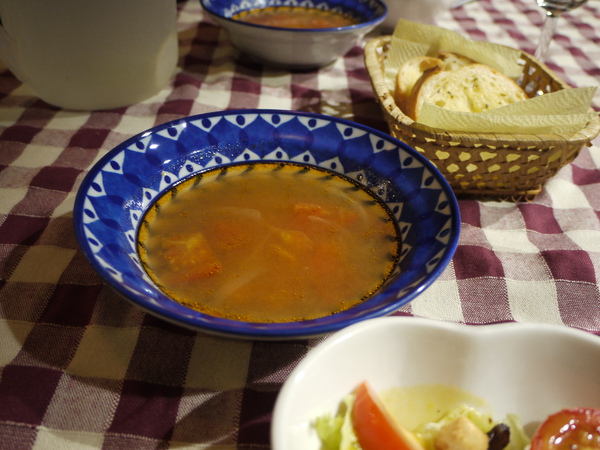 雖然只是湯點,裡面含有許多蔬菜,在加上一點點麵包,最後一片的檸檬片,不只爽口解熱,也同時有飽足感,這是我個人非常懷念的菜色,可惜主廚試過幾次,台灣人的口味會覺得湯不熱就不是湯,或是不新鮮,所以後來只好配合只做熱湯。
