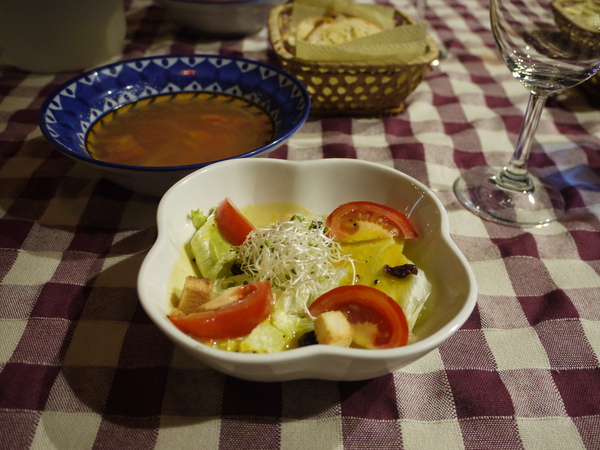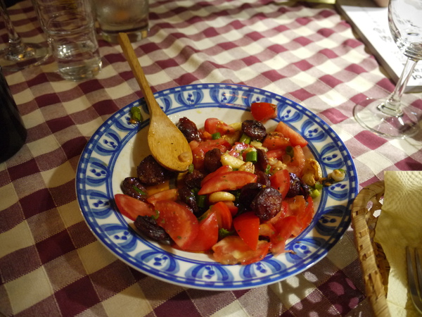 沙拉的部分,主廚推出新的小菜替代,用原本菜單中的小菜,西班牙辣香腸扮上番茄和蒜頭,非常夠味有嚼勁。這可是只有老主顧才有的待遇。