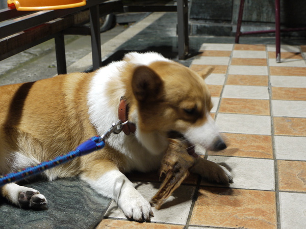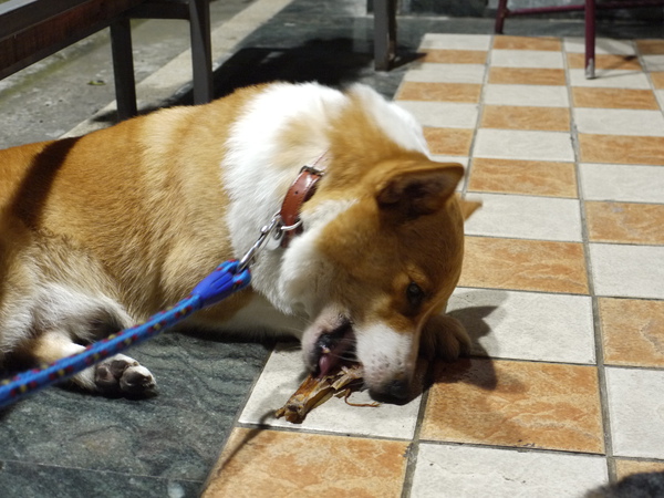 今天老爸有準備帶肉牛小腿,兩犬秒殺的速度太快,來不及拍。
