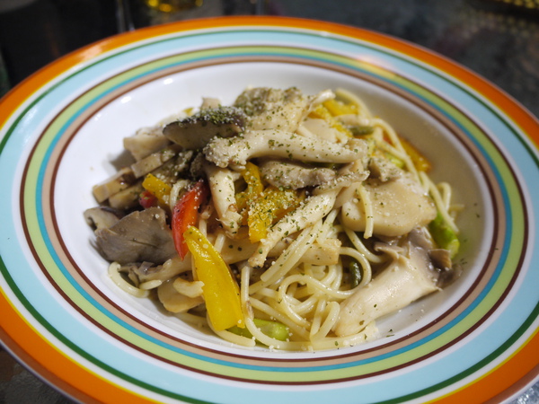 主菜是辣炒香菇義大利麵,算是養生健康又不易胖的料理。
