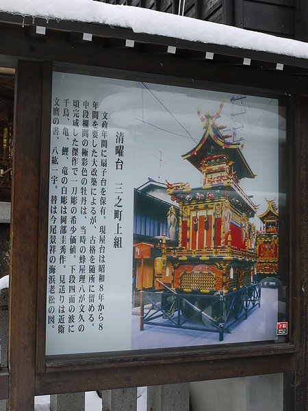 此區有個特色就是屋台,每年四月的高山祭堪稱是日本三大祭典之一,講究的就是屋台的裝飾與木工的高超技藝。屋台平常是收藏起來,只有在祭典時,才會全區的住戶一起出動,共享年度的盛事。