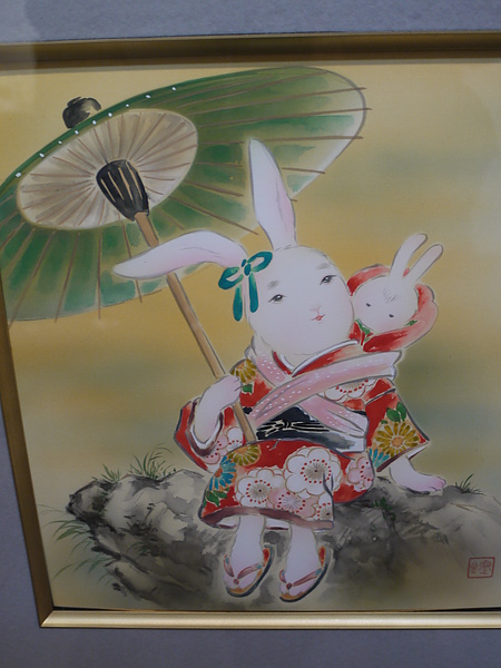 我個人覺得比較有意思的是,今年是兔年,日本人是過新曆年,不知道是不是也知道今年是兔年。有一家店舖竟然是完全以兔子當主題,連嫦娥奔月的嫦娥也變成兔子。