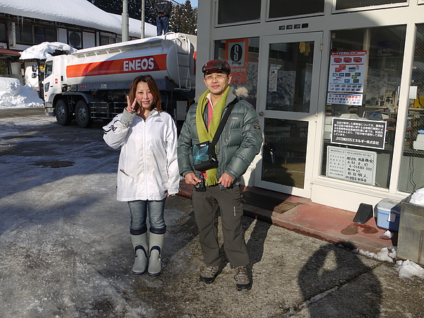 想要跟接待的小姐說我要寄放行李,中午再來拿。不過,她的意思好像是說,早上9點以後他們就休息。所以,行李是寄放在對面的加油站,在這裡就順道請加油站的先生幫我照紀念照。旁邊的是接待的小姐。