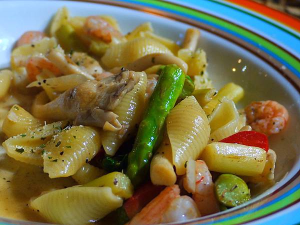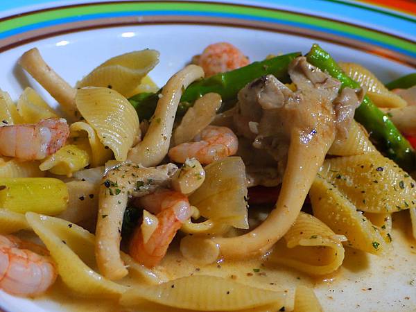 主餐是刁客的選擇,主廚大概是知道我的口味偏於清淡,貝殼麵是自備的,其餘是主廚自由發揮