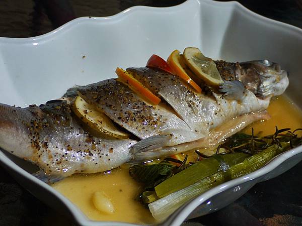 一道是清蒸鱒魚,熟度剛剛好,可以輕易的將魚肉與骨頭分開。