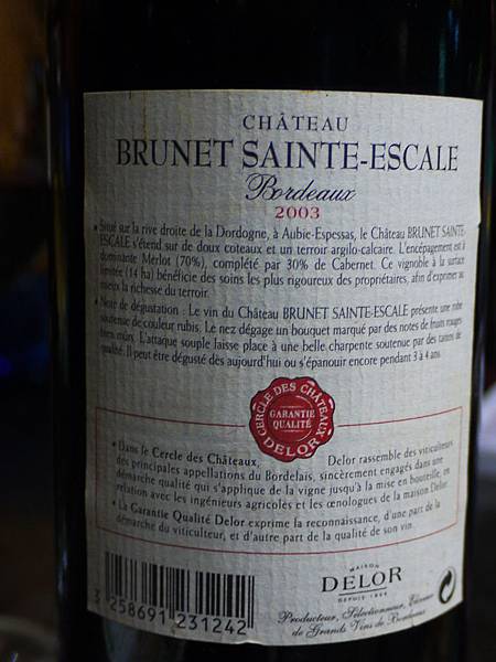 所以再追加一瓶紅酒,原來這也是主廚私藏的紅酒,同樣來自法國的Bordeaux,年分也是2003年,所以也剛好是到了適飲的年份。