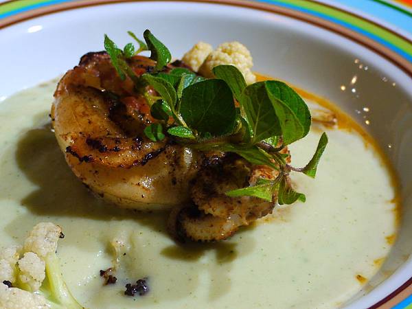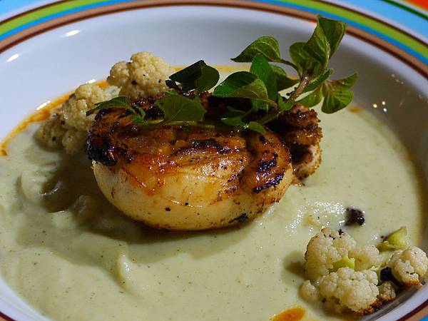 另一道是,鹽烤花枝佐冰鎮花椰菜泥。