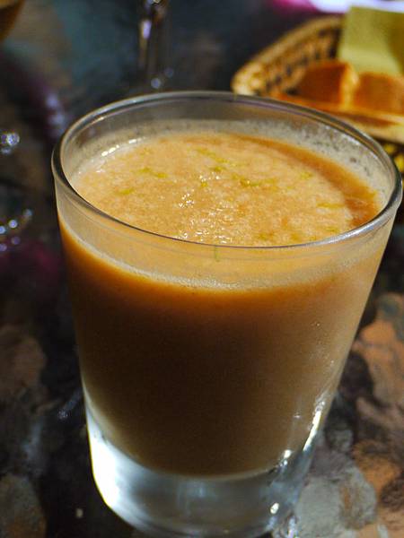 今天的主題有好幾個。先說番茄冷湯,雖然說主廚有去過西班牙的賽維亞,可惜是台灣的客人不喜歡這道料理。這要談到tapas的精神,又是一個long story。簡單說,這是一道可以暫時填肚子的料理,因為有麵包,又在炎熱的南歐,這是很清爽的前菜。