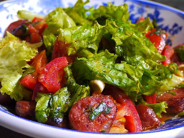 我的前菜有香腸沙拉,這已經被列入正式的菜單了。