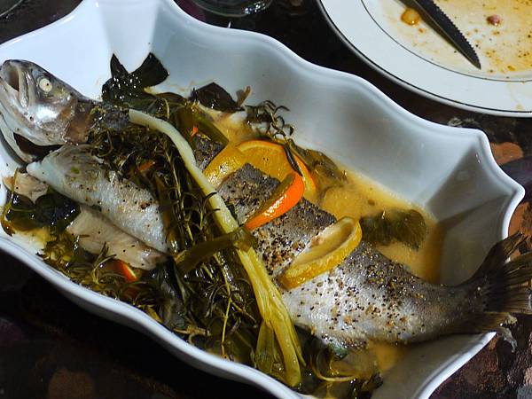 今天的清蒸鱒魚比以前的又更大,熟度也是剛剛好,所以可以輕易的把魚肉和骨頭輕易的分離,