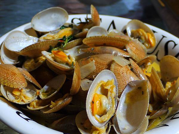第二道是啤酒淡菜,應該是說百威啤酒奶油淡菜。連湯汁都可以沾著麵包吃,這是法式料理的手法。